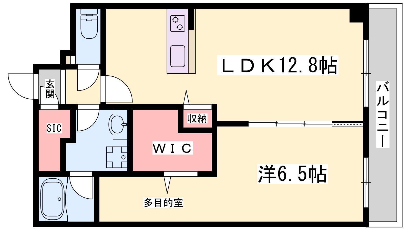 - LDK12.8帖、洋室6.5帖