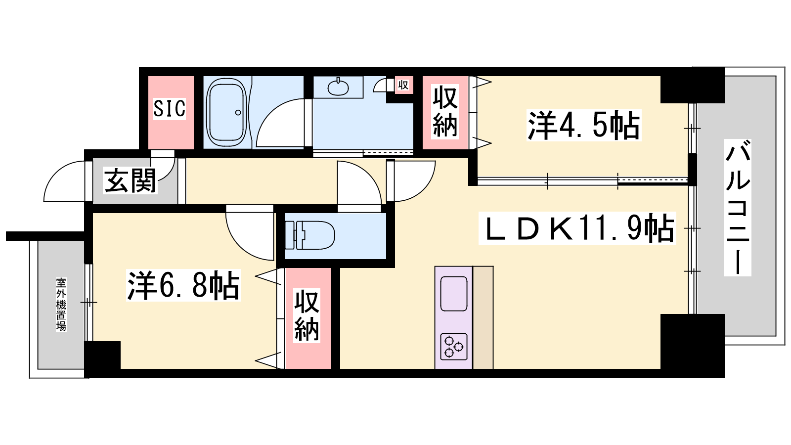 - LDK11.9帖、洋室6.8帖、洋室4.5帖