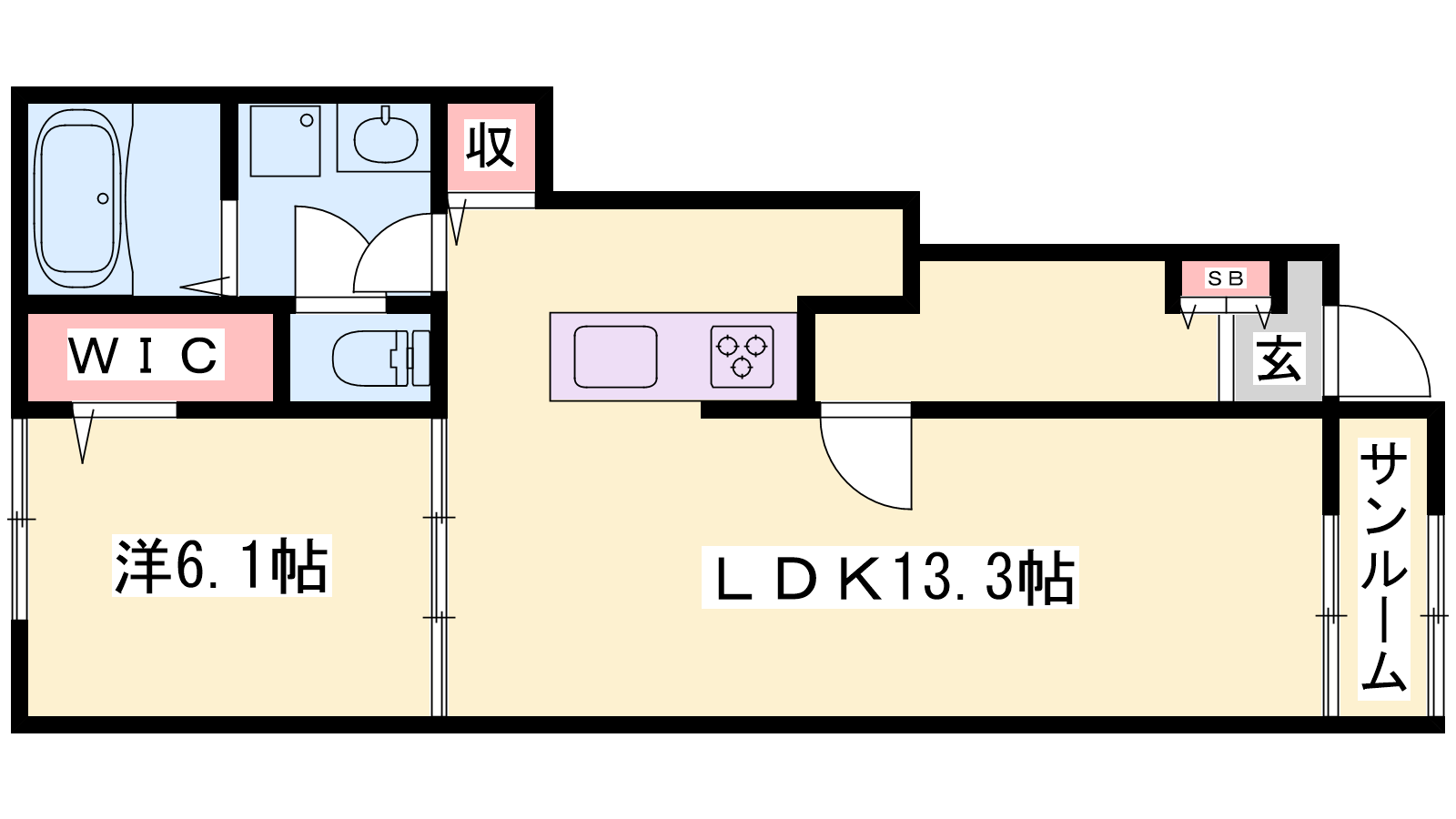 - LDK13.3帖、洋室6.1帖