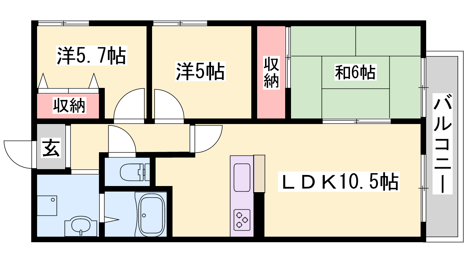 - LDK10.5帖、洋室5.7帖、洋室5帖、和室6帖