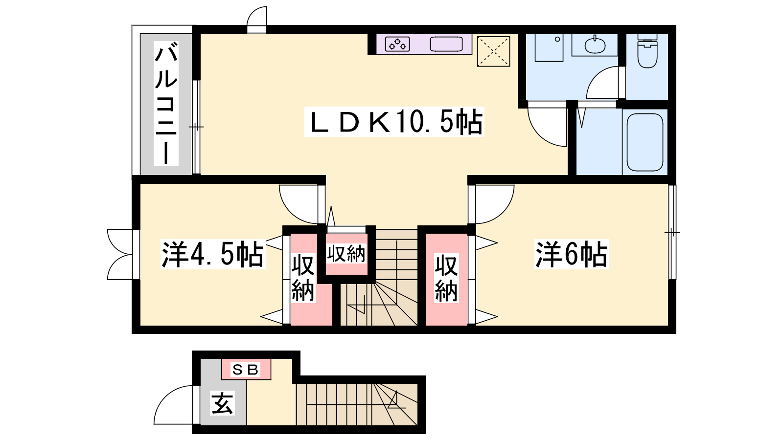 - LDK10.5帖、洋室6帖、洋室4.5帖