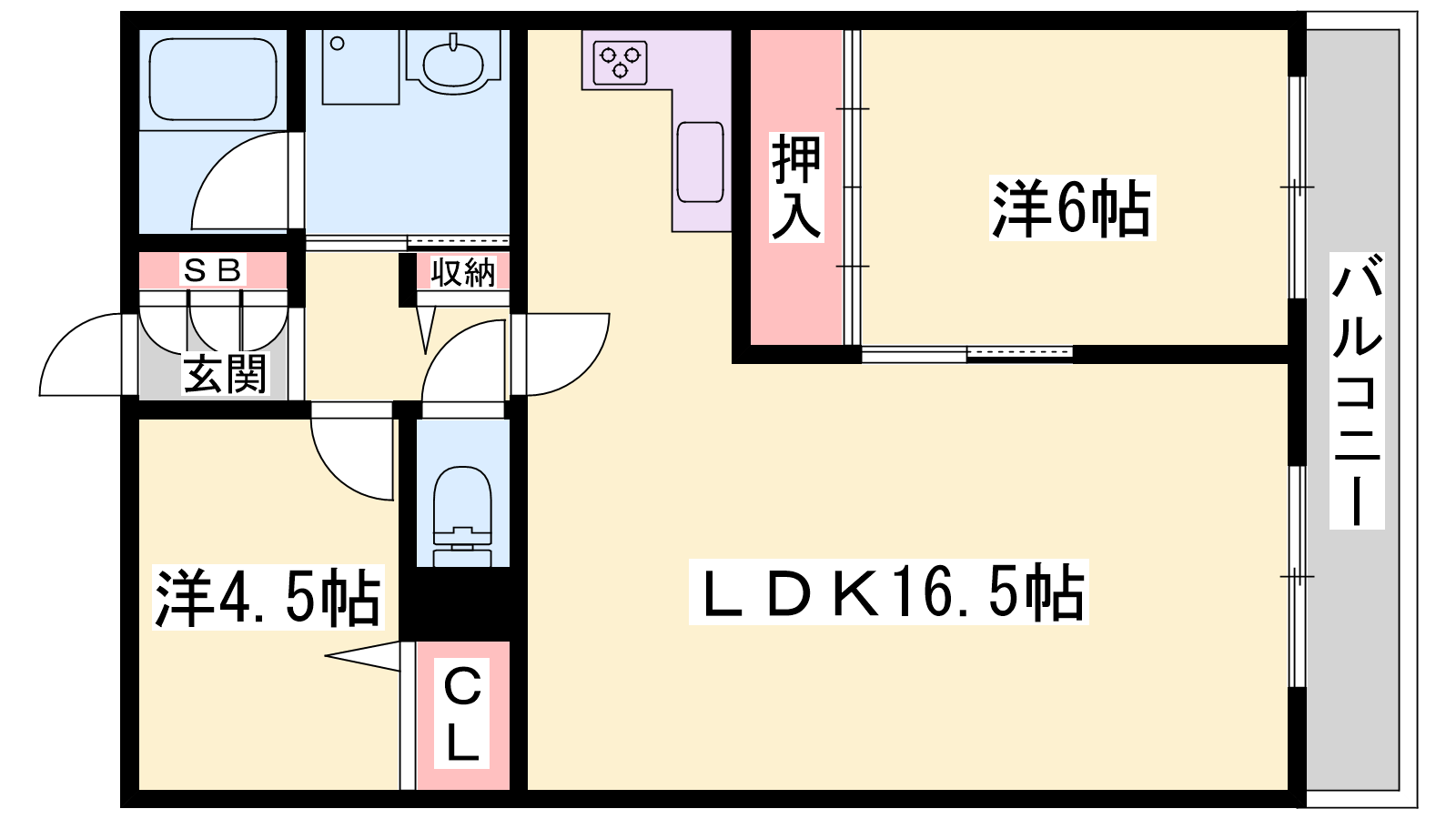 - LDK16.5帖、洋室4.5帖、洋室6帖