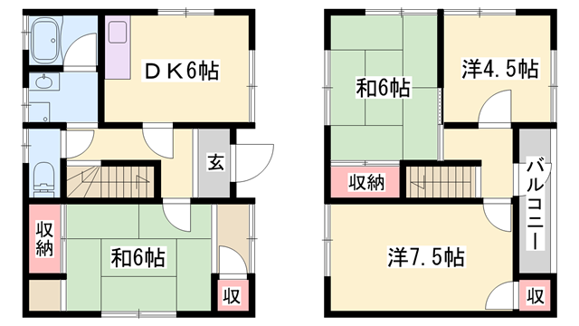 - DK6帖、洋室7.5帖、洋室4.5帖、和室6帖、和室6帖
