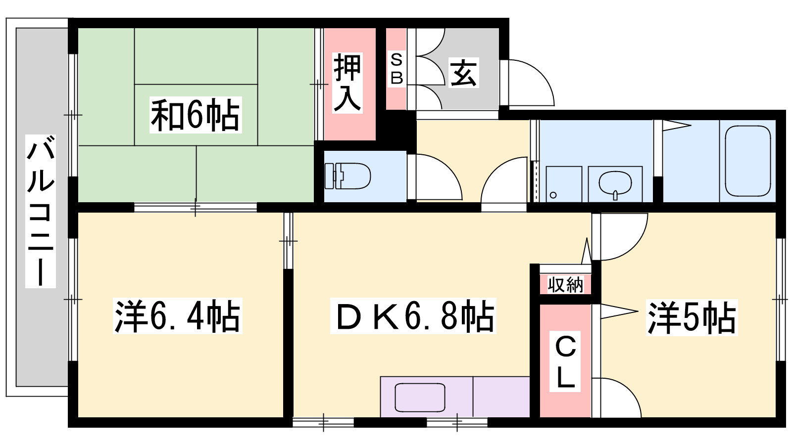 - DK6.8帖、洋室6.4帖、洋室5帖、和室6帖