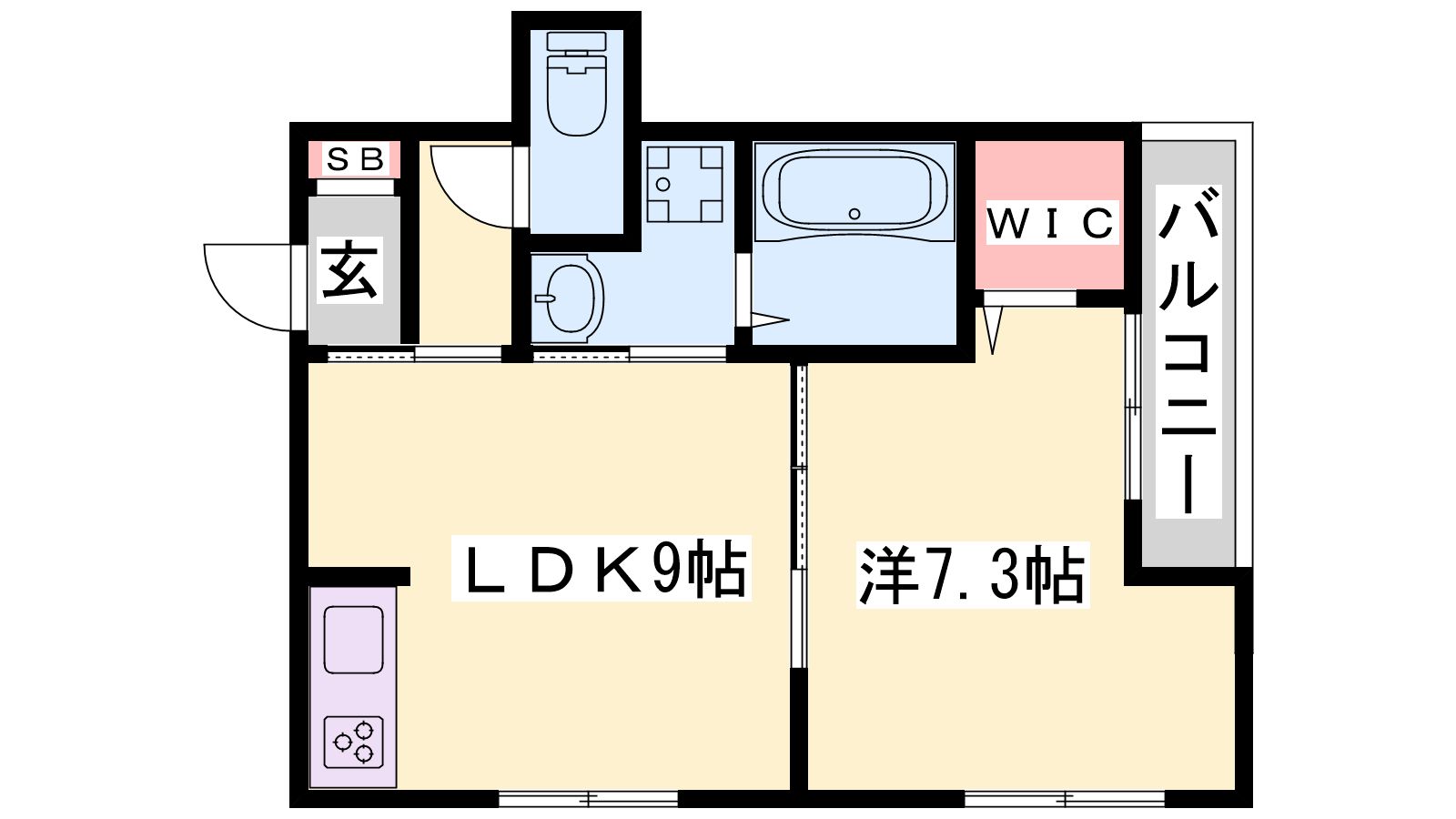 - LDK9帖、洋室7.3帖