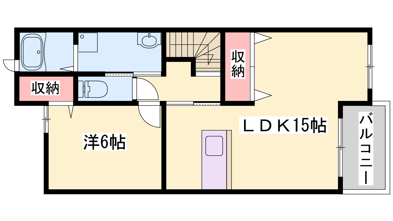 - LDK15帖、洋室6帖