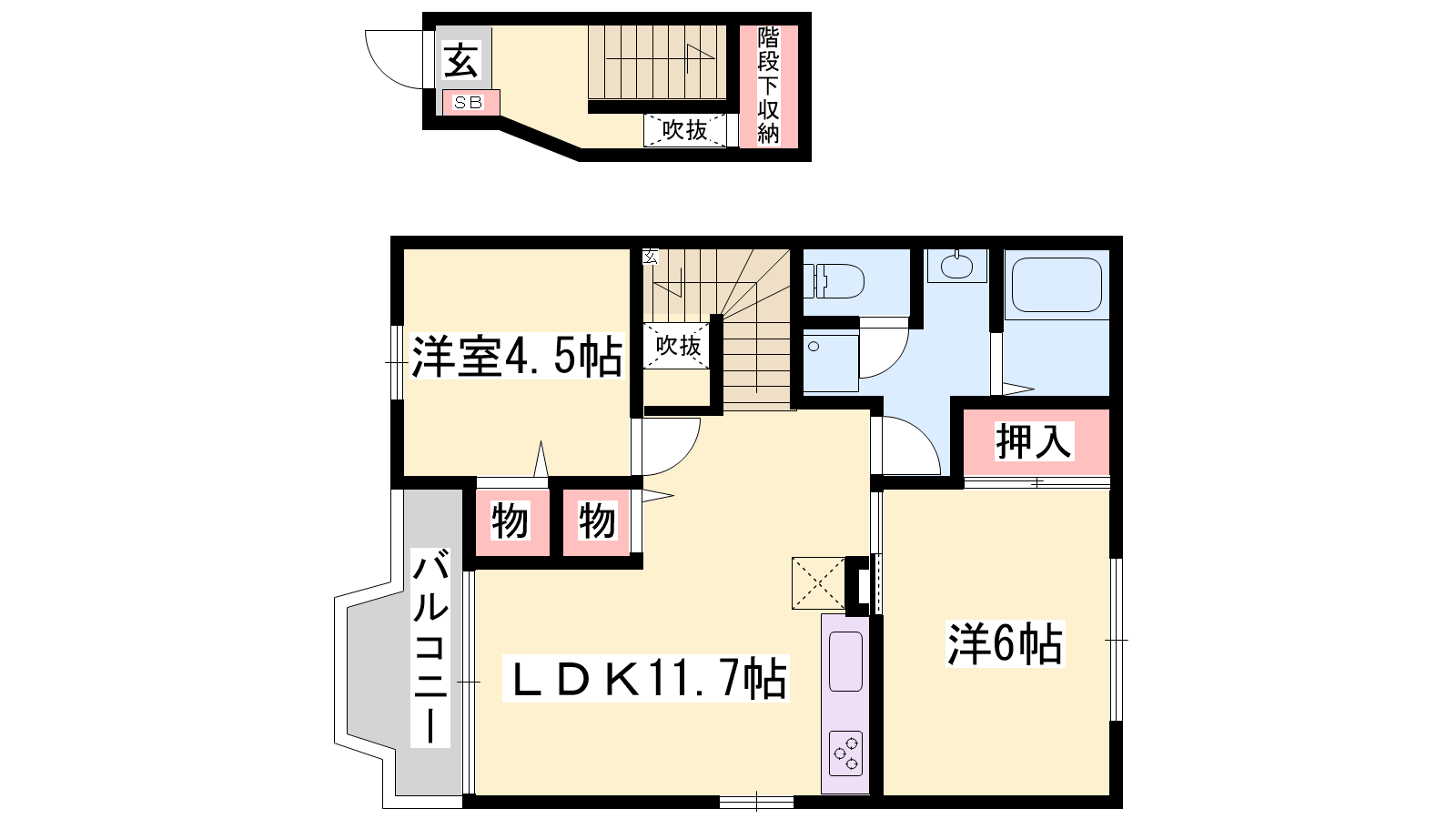 - LDK11.7帖、洋室4.5帖、洋室6帖