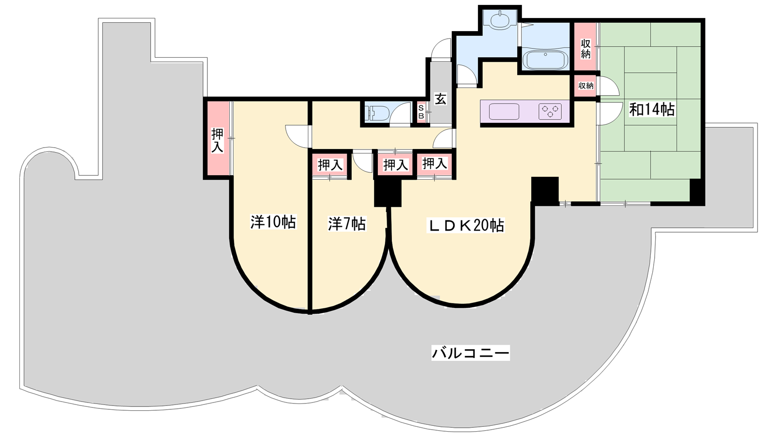 - LDK20帖、洋室10帖、洋室7帖、和室14帖