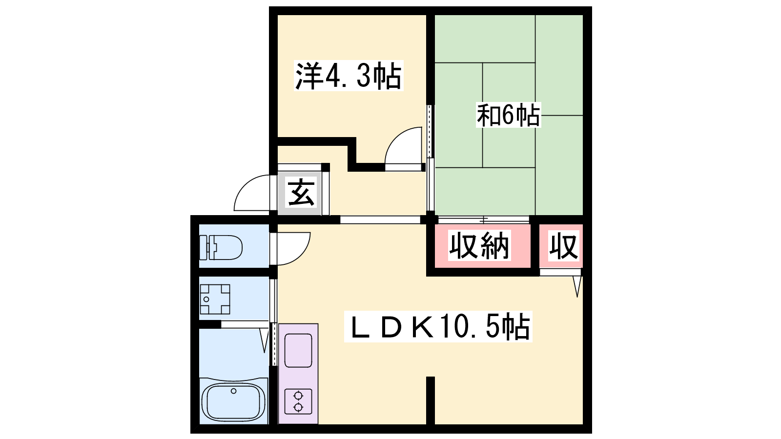 - LDK10.5帖、洋室4.3帖、和室6帖