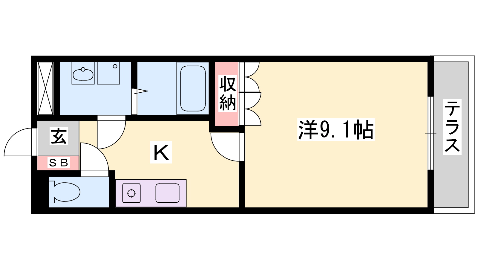 - K2.5帖、洋室9.1帖