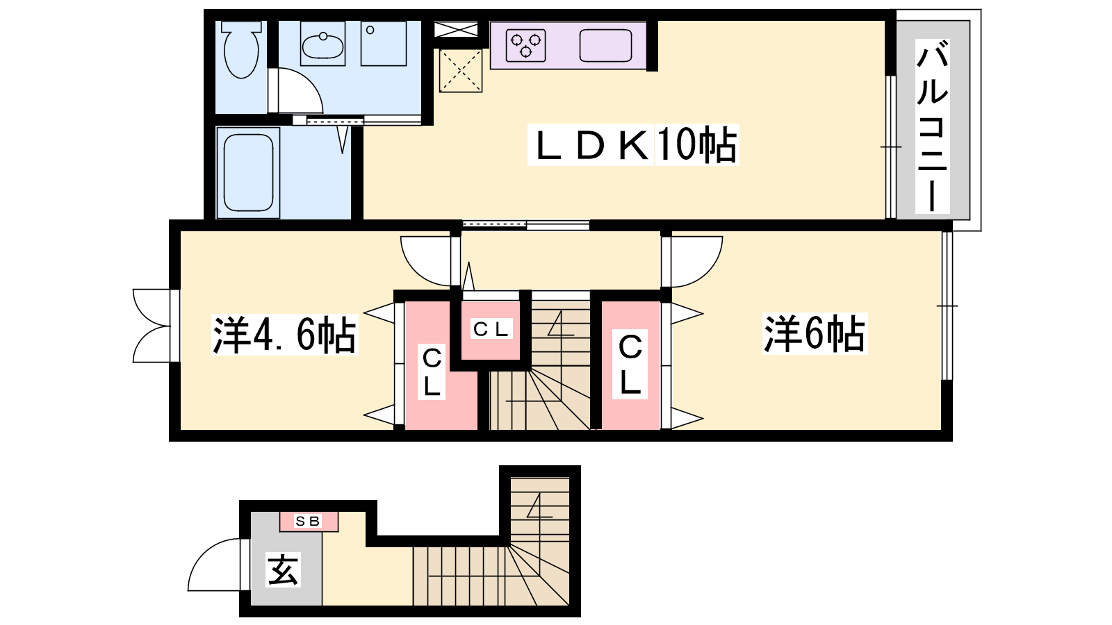 - LDK10帖、洋室6帖、洋室4.6帖