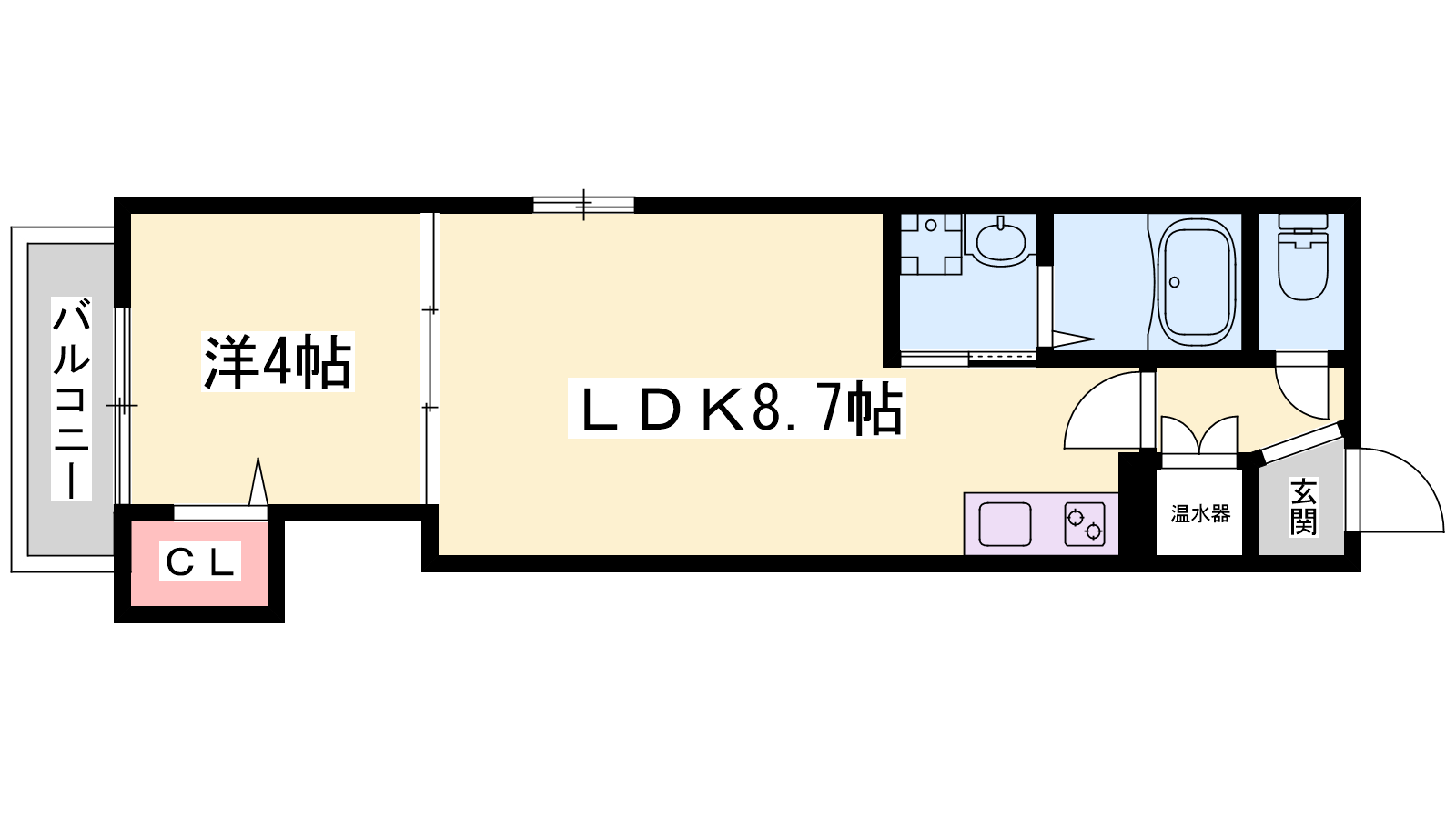 - LDK8.7帖、洋室4帖