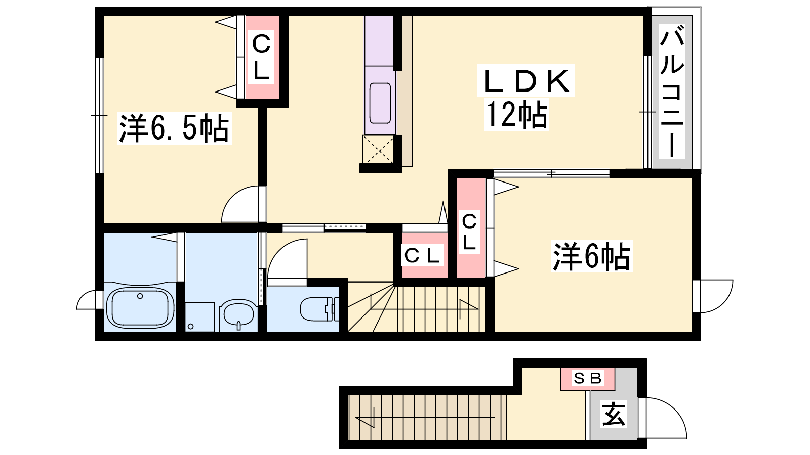- LDK12帖、洋室6.5帖、洋室6帖