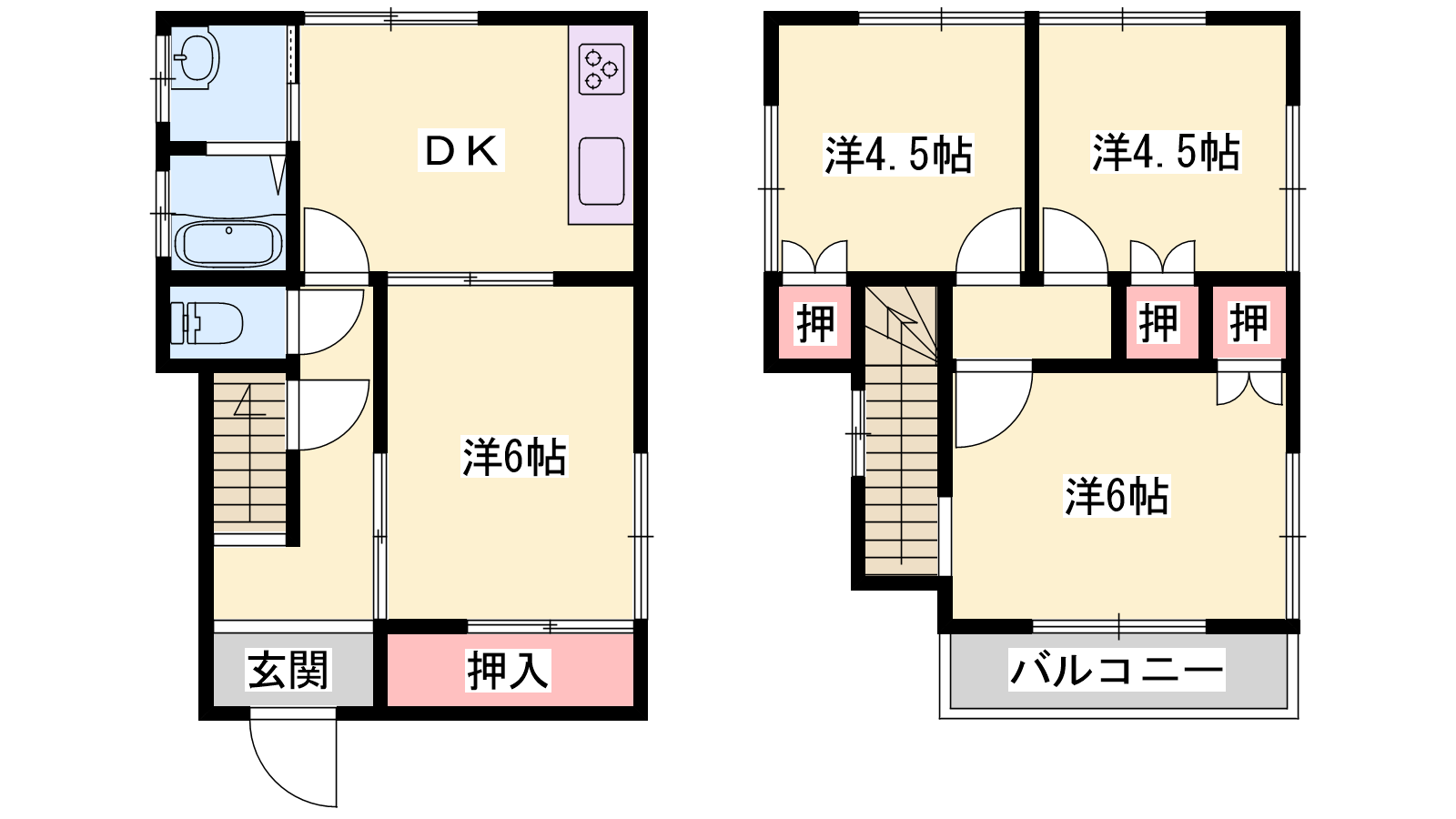 - 洋室6帖、洋室6帖、洋室4.5帖、洋室4.5帖