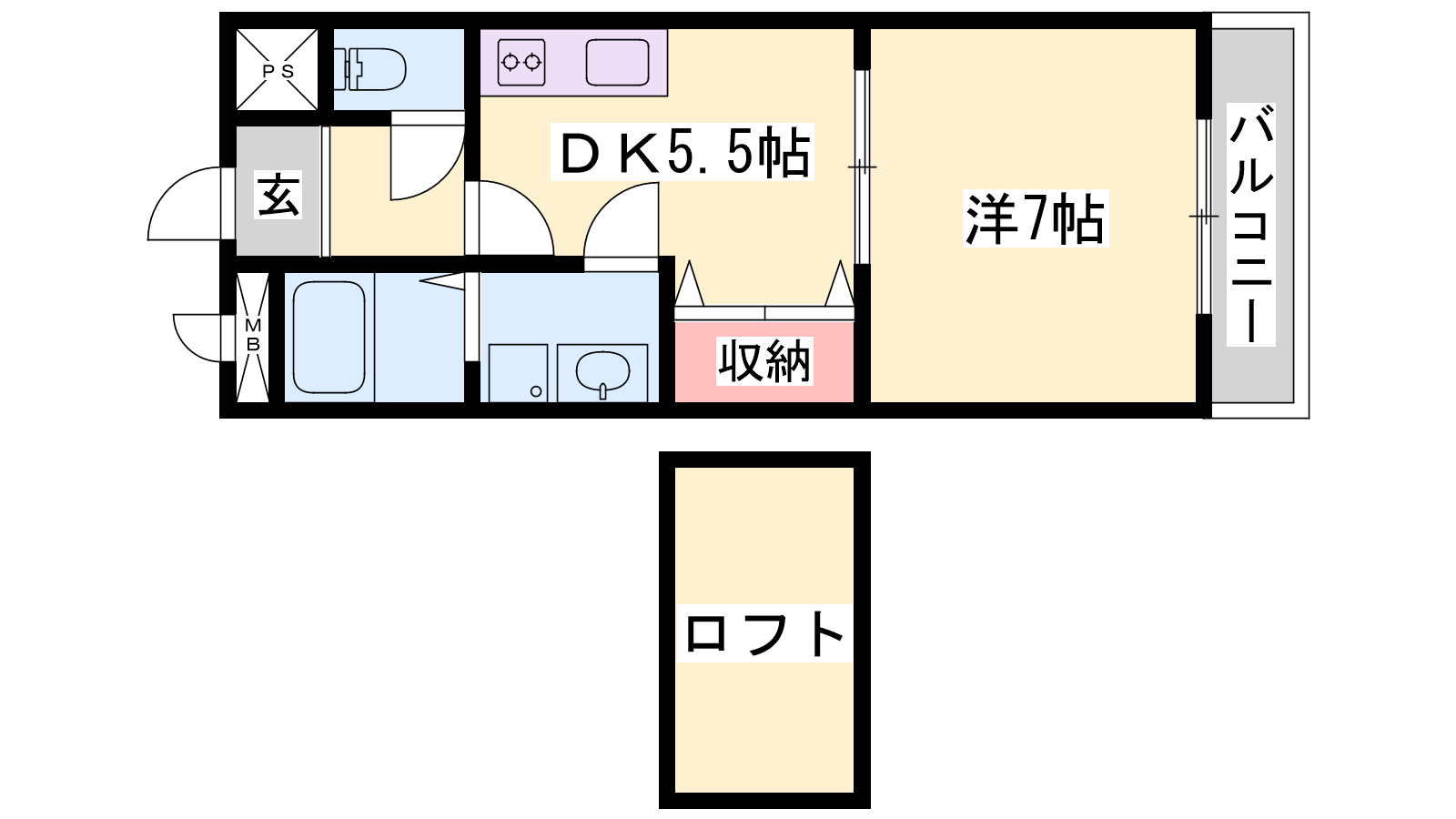 - DK5.5帖、洋室7帖