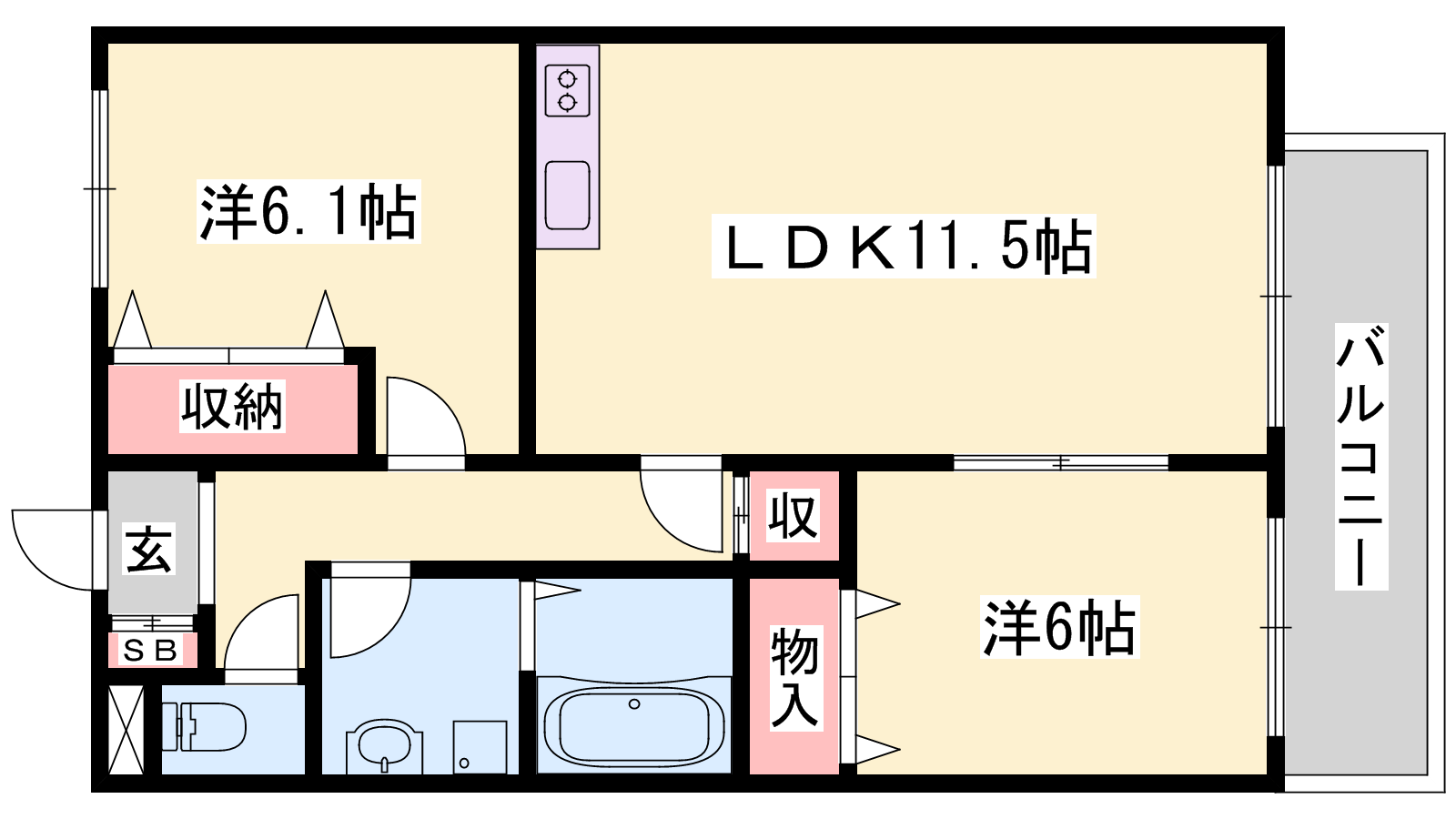 - LDK11.5帖、洋室6.1帖、洋室6帖