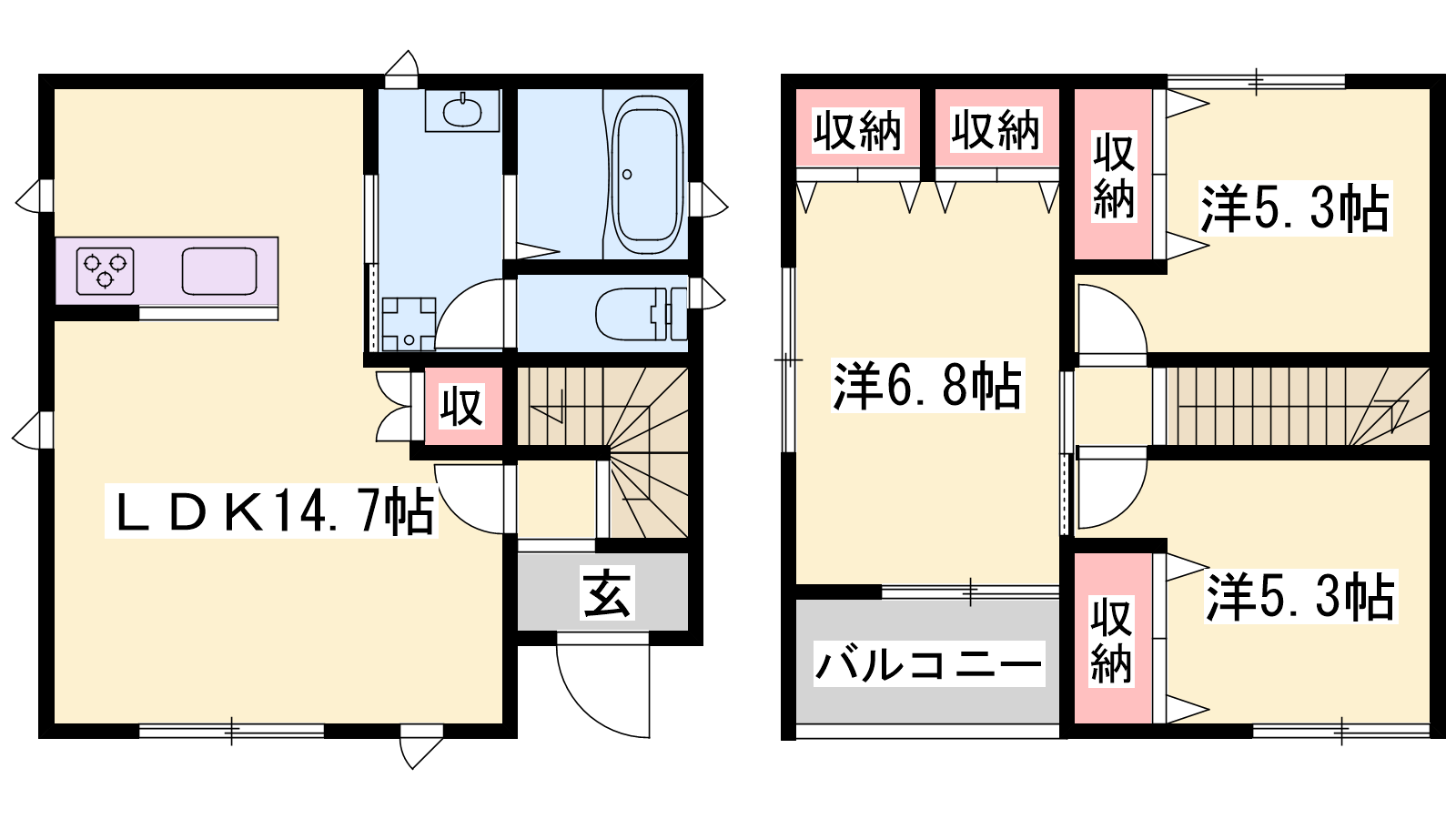 - LDK14.7帖、洋室6.7帖、洋室5.2帖、洋室5.2帖
