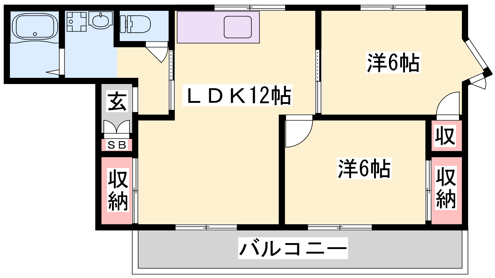 - LDK12帖、洋室6帖、洋室6帖
