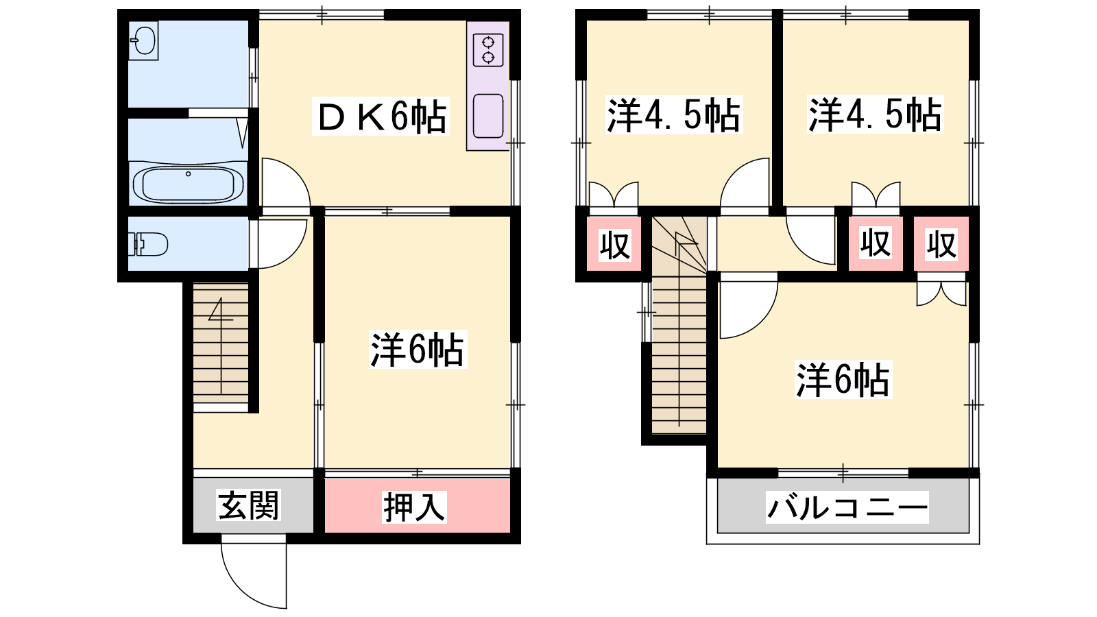- DK6帖、洋室6帖、洋室6帖、洋室4.5帖、洋室4.5帖