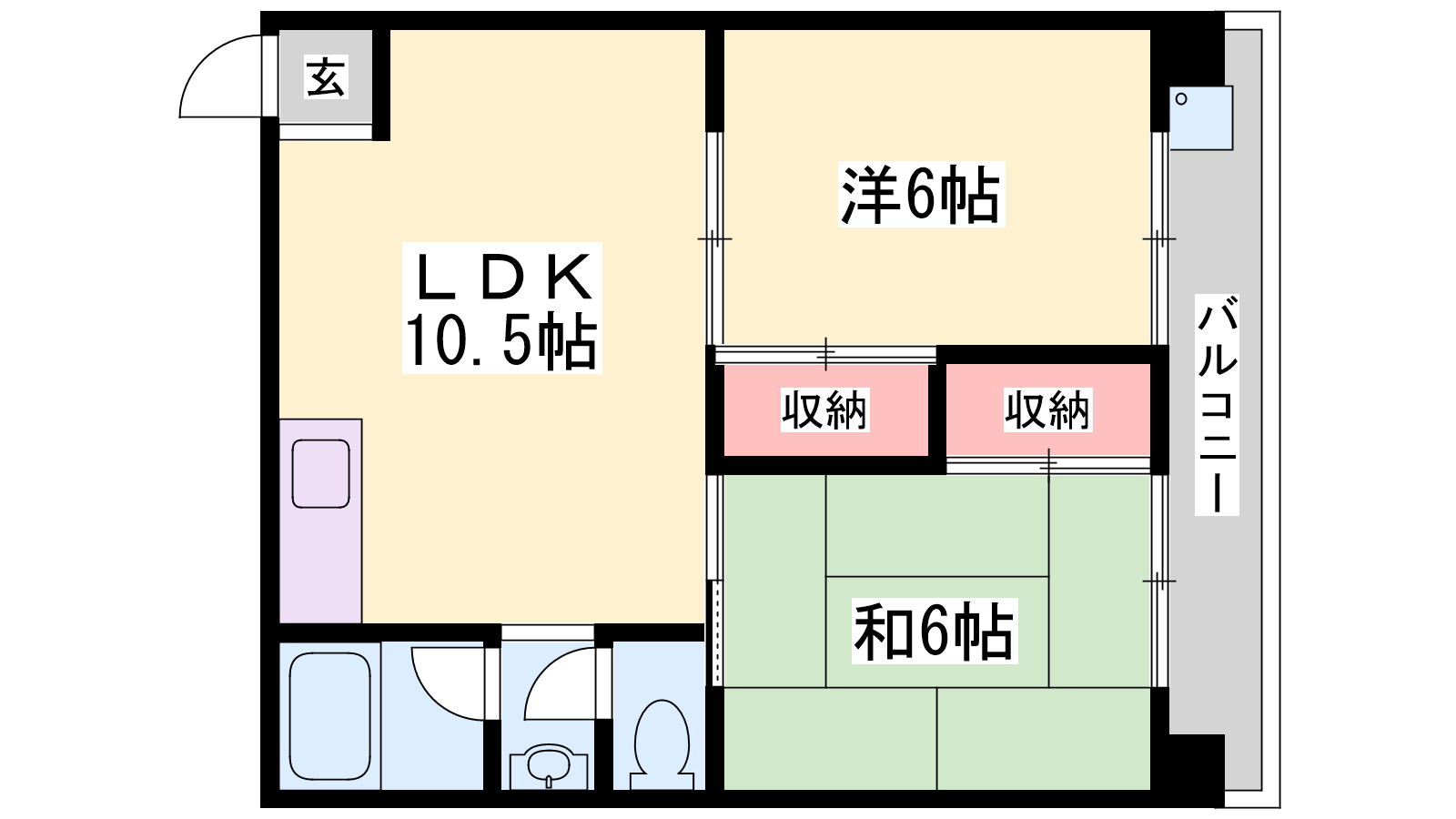 - LDK10.5帖、洋室6帖、和室6帖