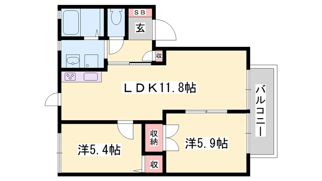 - LDK11.8帖、洋室5.9帖、洋室5.4帖