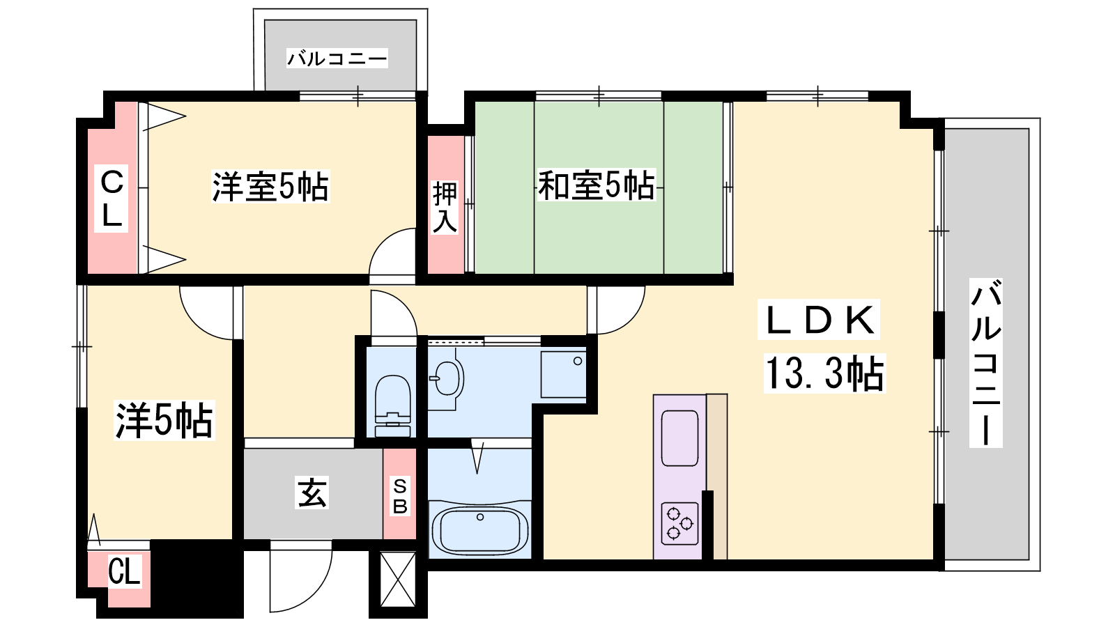 - LDK13.3帖、洋室5帖、洋室4.2帖、和室5帖