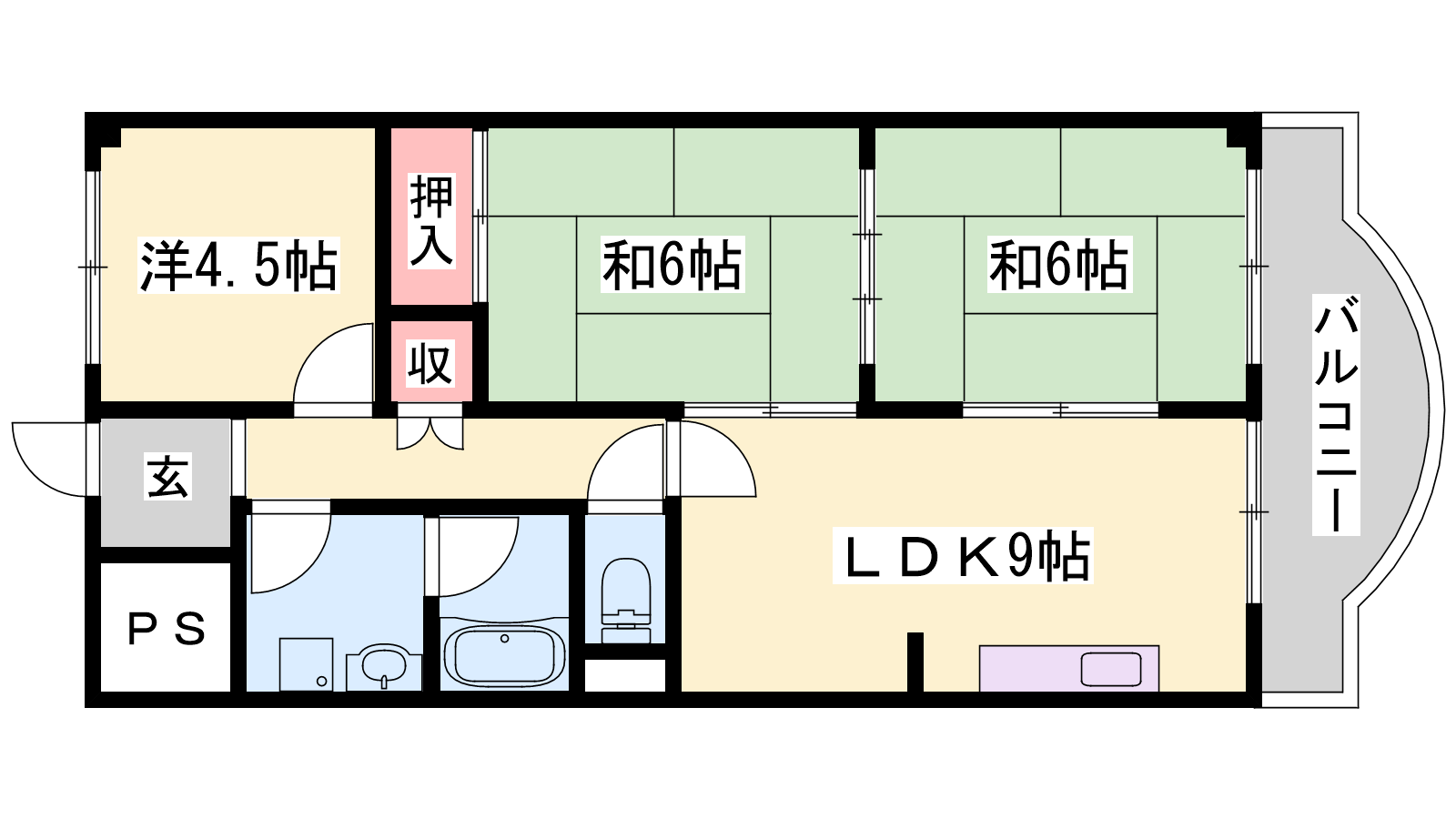 - LDK9帖、和室6帖、和室6帖、洋室4.5帖