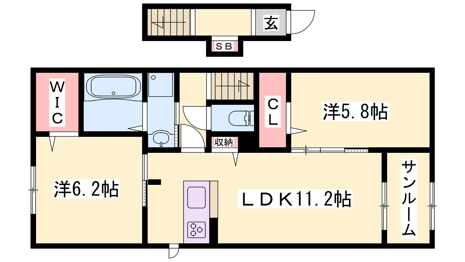 - LDK11.2帖、洋室6.2帖、洋室5.8帖