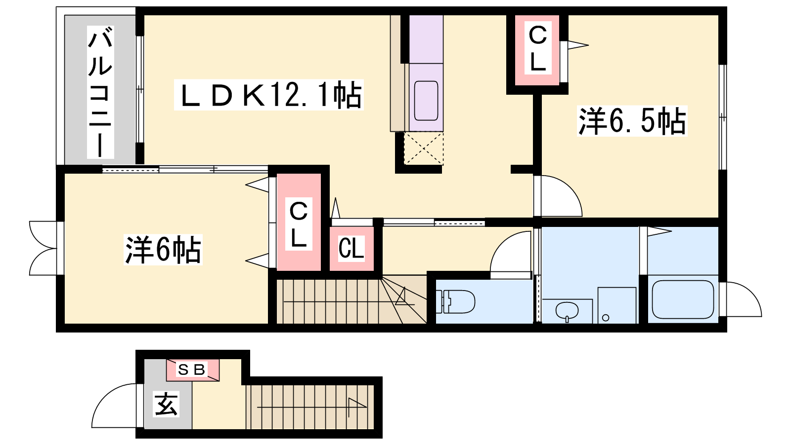 - LDK12.1帖、洋室6.5帖、洋室6帖