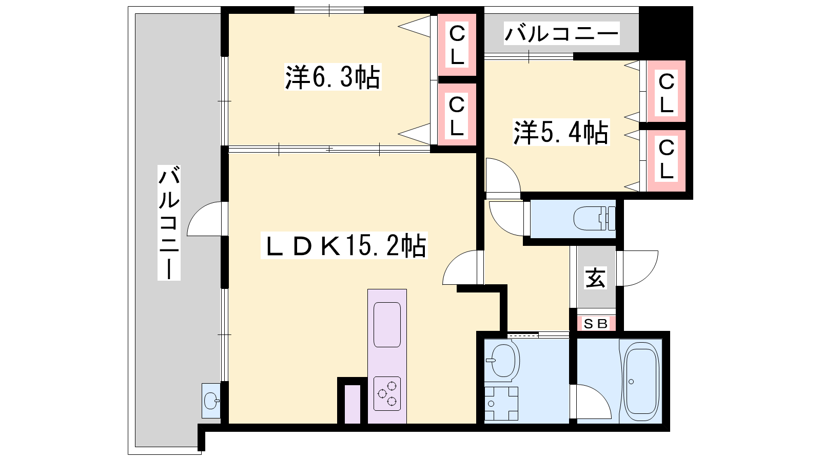 - LDK15.2帖、洋室6.3帖、洋室5.4帖