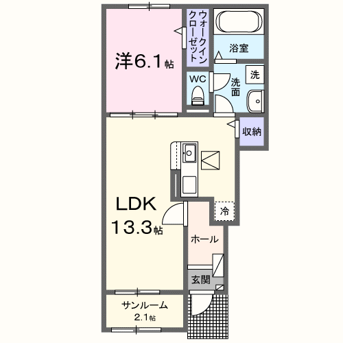 - LDK13.3帖、洋室6.1帖
