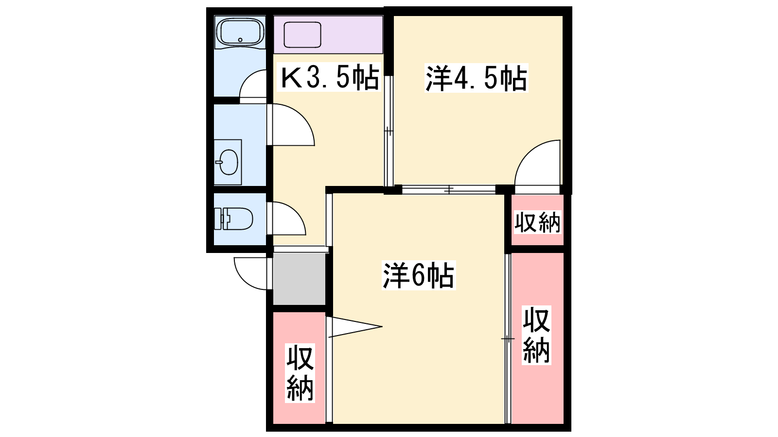 - DK3.5帖、洋室6帖、洋室4.5帖