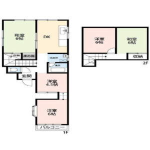 - 洋室6帖、洋室6帖、洋室4.5帖、和室6帖、和室6帖