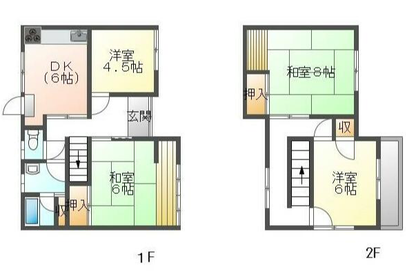- DK6帖、洋室6帖、洋室4.5帖、和室8帖、和室6帖