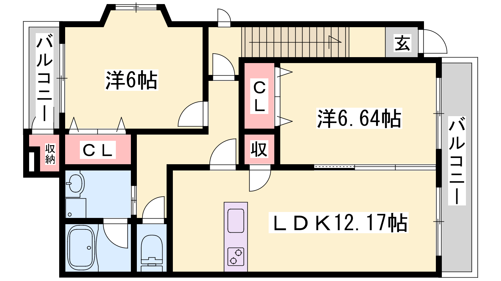 - LDK12.2帖、洋室6.6帖、洋室6帖