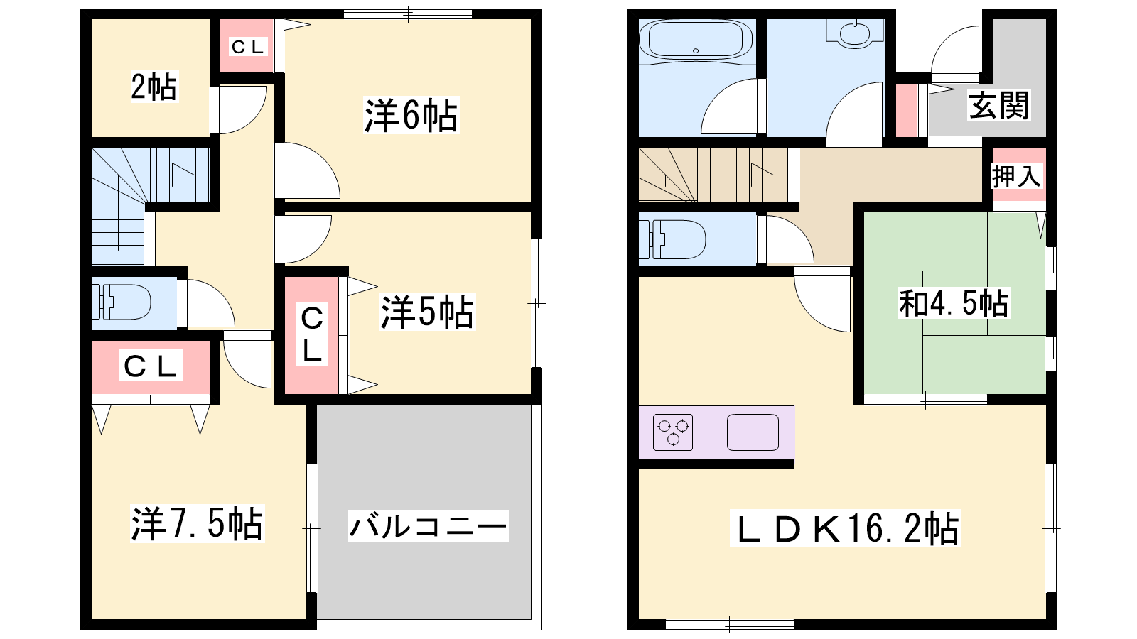 - LDK16.2帖、洋室6帖、洋室5帖、洋室7.5帖