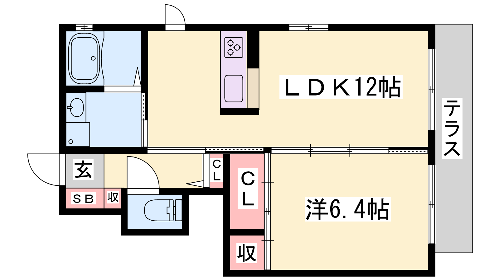 - LDK12帖、洋室6.4帖
