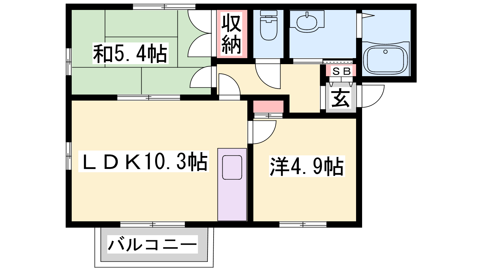 - LDK10.3帖、洋室4.9帖、和室5.4帖
