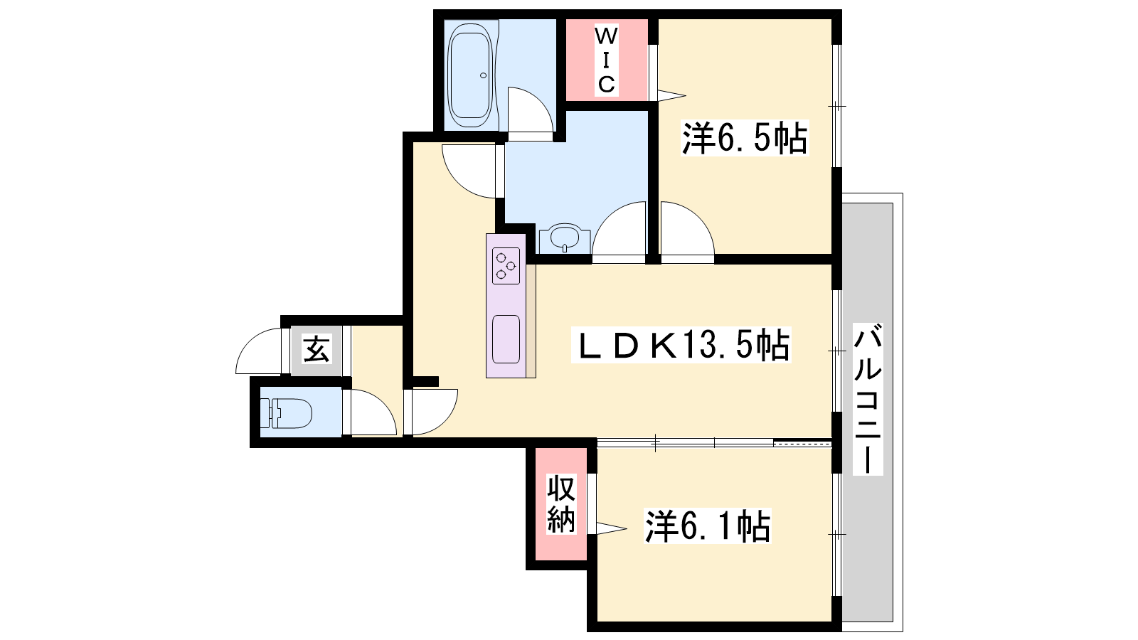 - LDK13.5帖、洋室6.5帖、洋室6.1帖