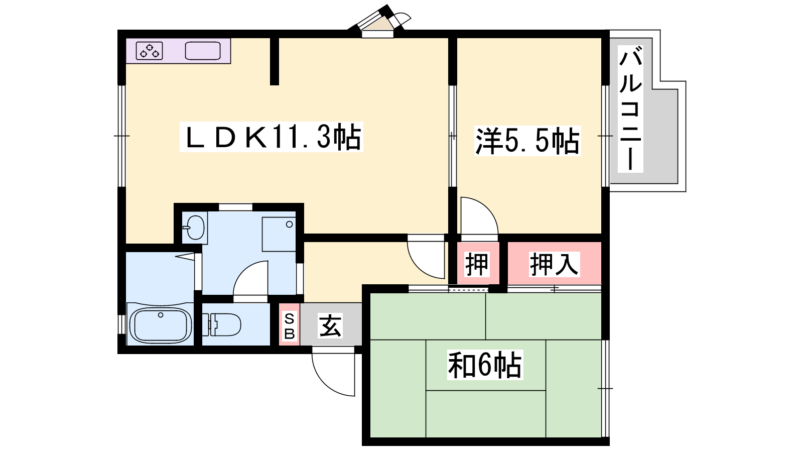 - LDK11.3帖、洋室5.5帖、洋室6.1帖