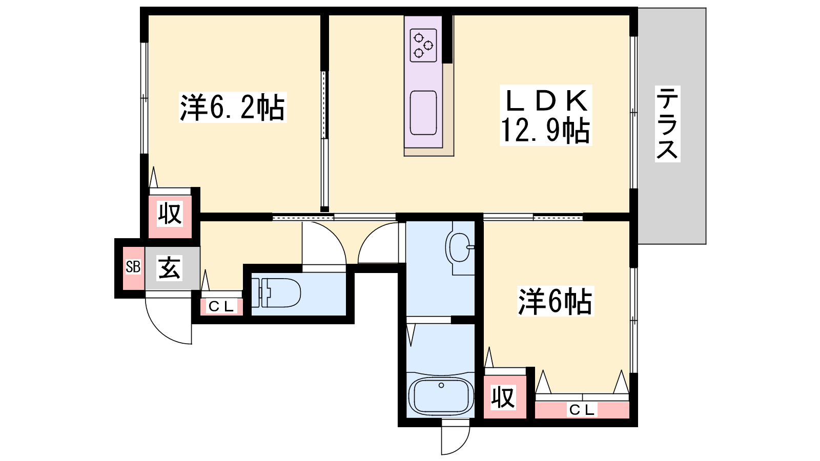 - LDK12.9帖、洋室6.2帖、洋室6帖