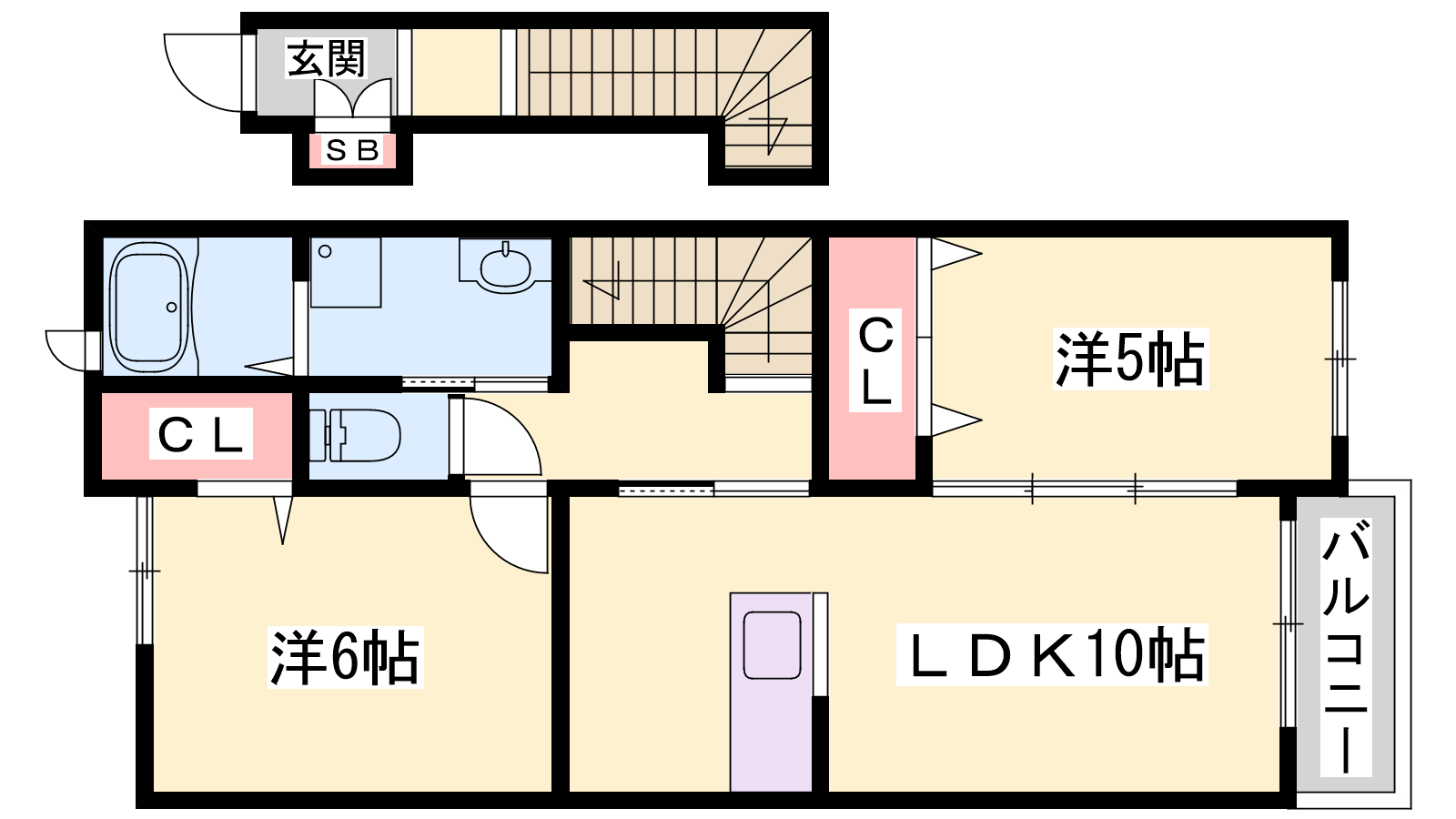- LDK10帖、洋室6帖、洋室5帖