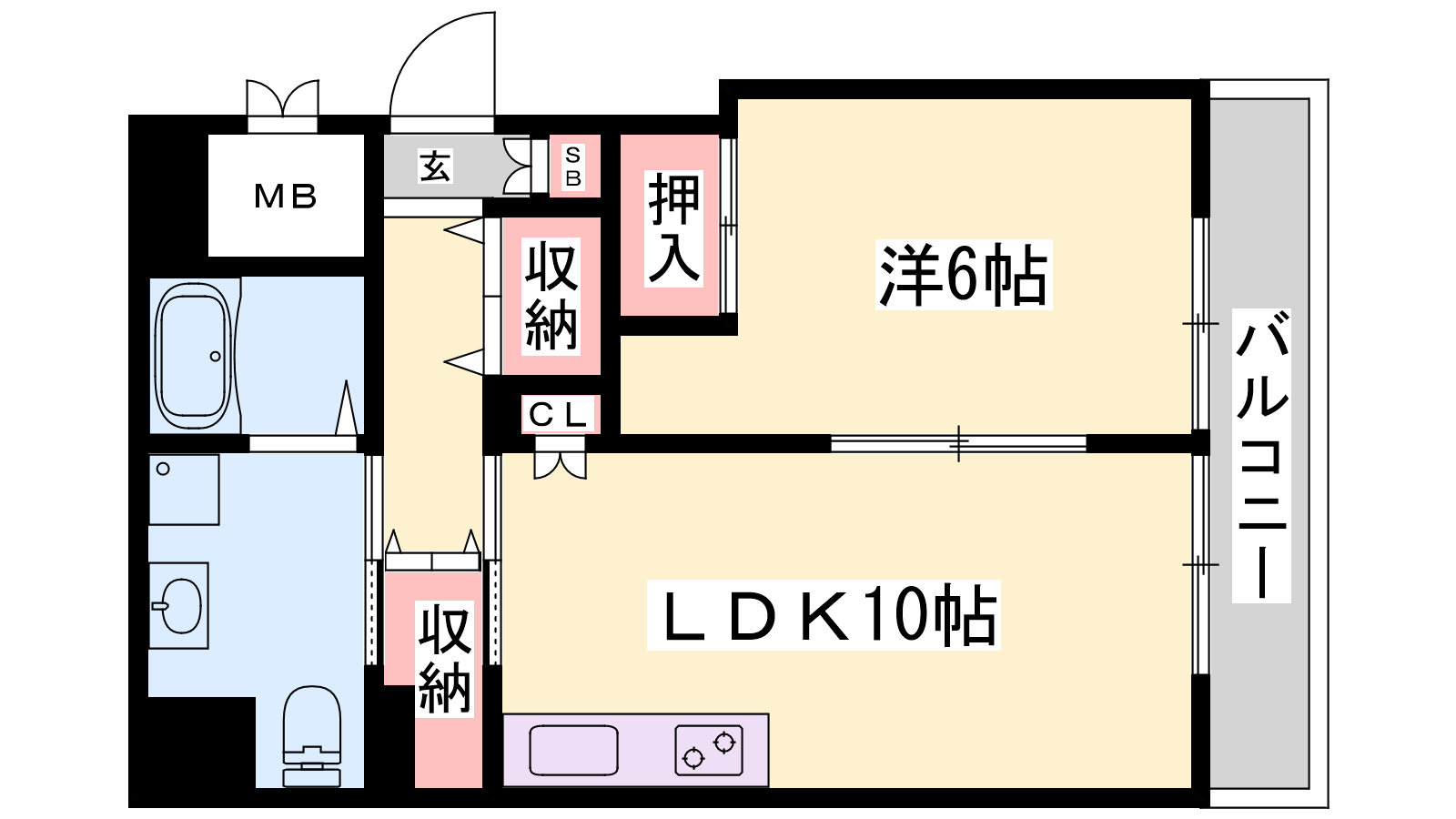 - LDK10帖、洋室6帖