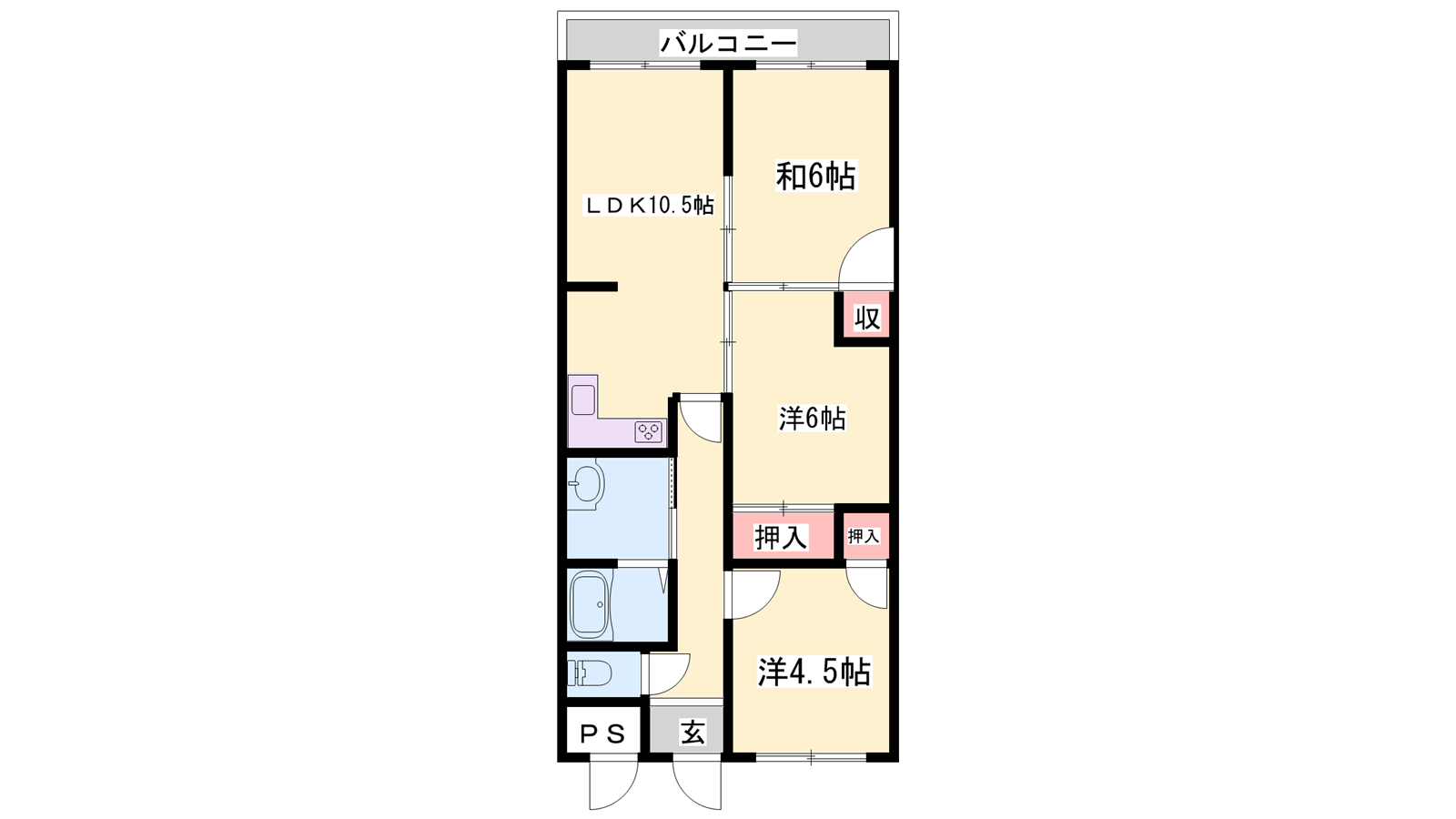 - LDK10.5帖、洋室4.5帖、和室6帖、和室6帖