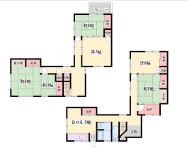 - DK8.5帖、洋室6帖、和室6帖、洋室7帖、和室6帖、和室6帖、和室3帖