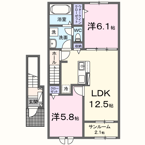 - LDK12.5帖、洋室6.1帖、洋室5.8帖