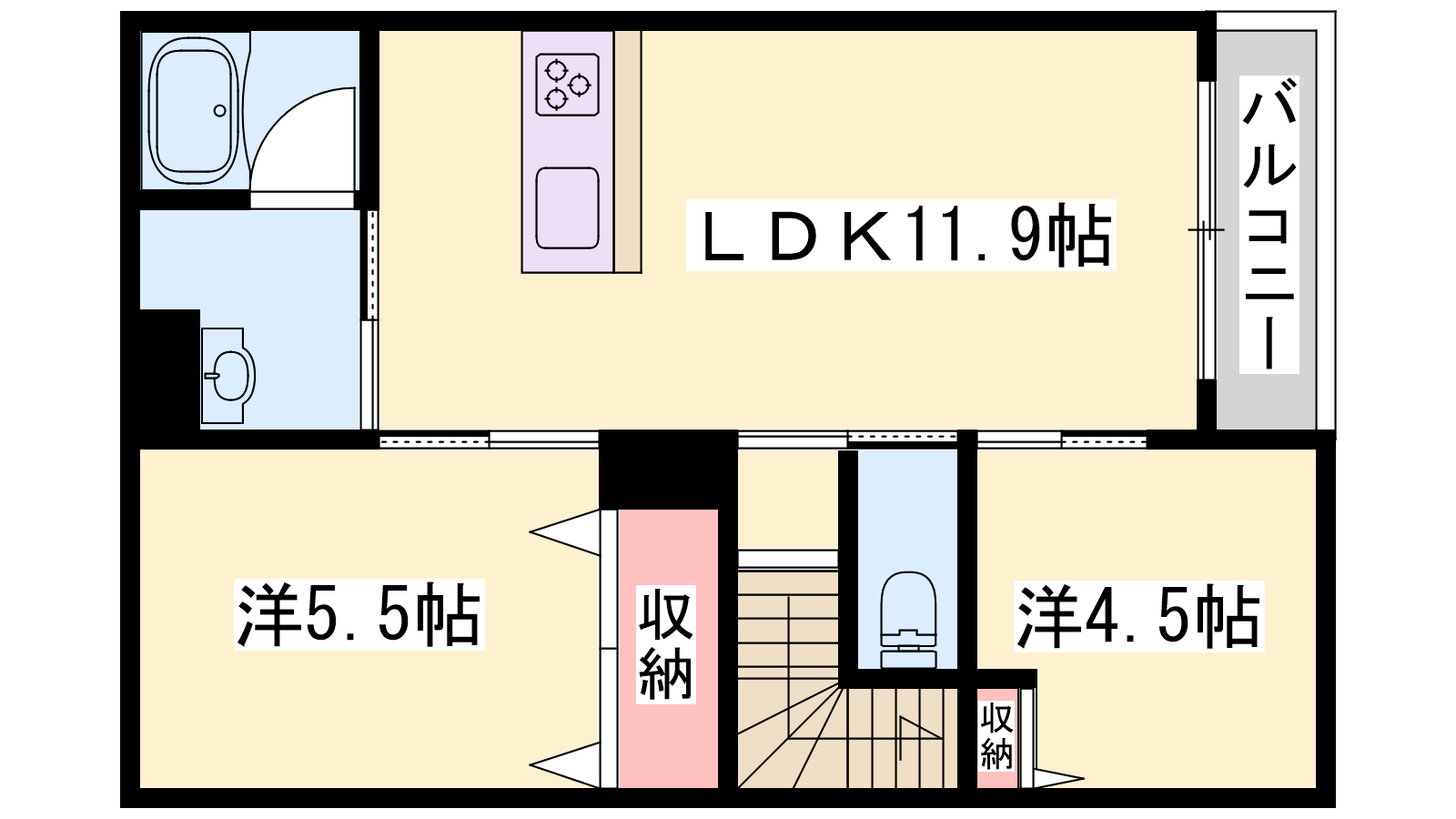 - LDK11.9帖、洋室5.5帖、洋室4.5帖