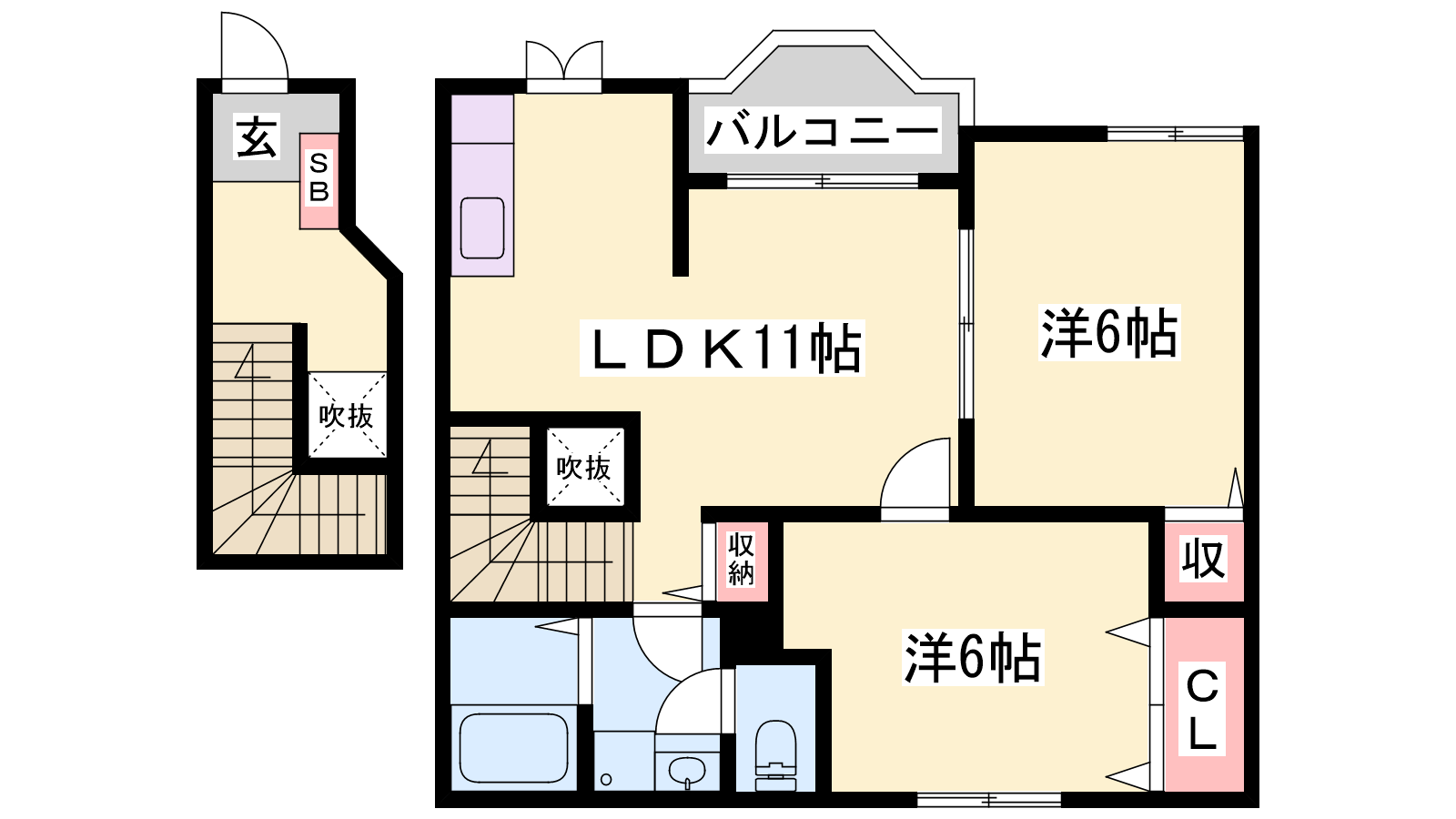 - LDK11帖、洋室6帖、和室6帖