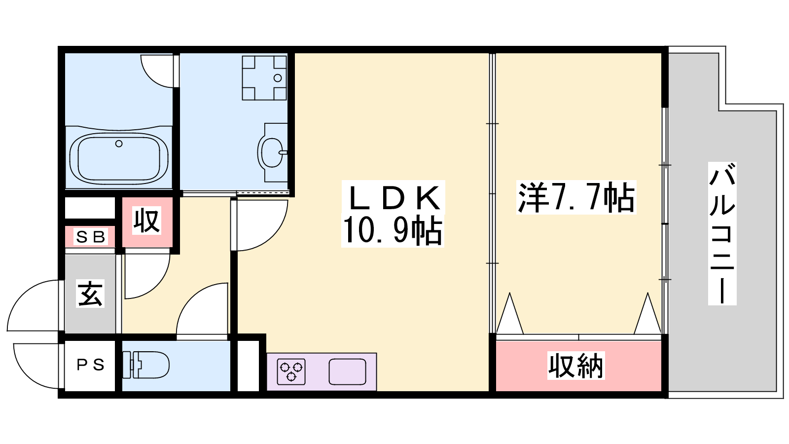 - LDK10.9帖、洋室7.7帖