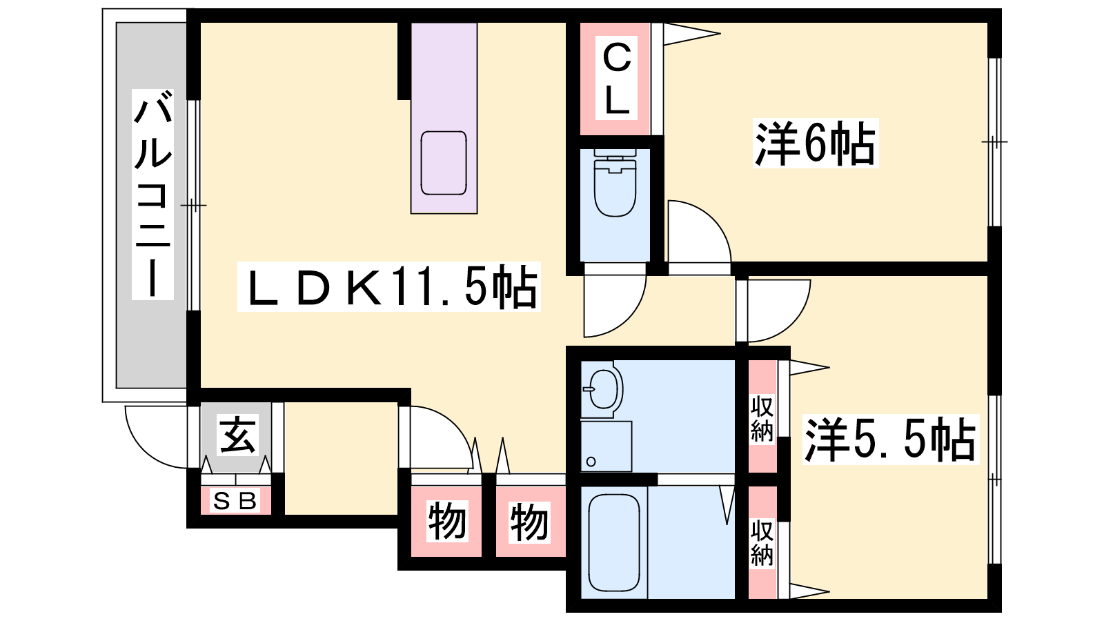 - LDK11.5帖、洋室6帖、洋室5.5帖